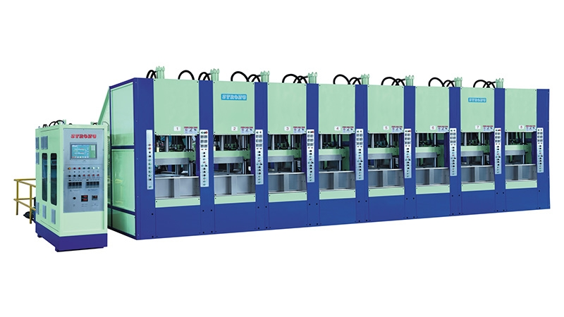 The hydraulic system adopts a servo-driven hydraulic control system, improving safety, stability, and reducing noise, while enabling precise multi-stage pressure and flow control through the computer system. The machine is designed with energy-saving features, including insulated mold stations that do not require water cooling and an air-cooled hydraulic system, significantly reducing energy consumption. A servo energy-saving system further reduces power consumption by approximately 30%.