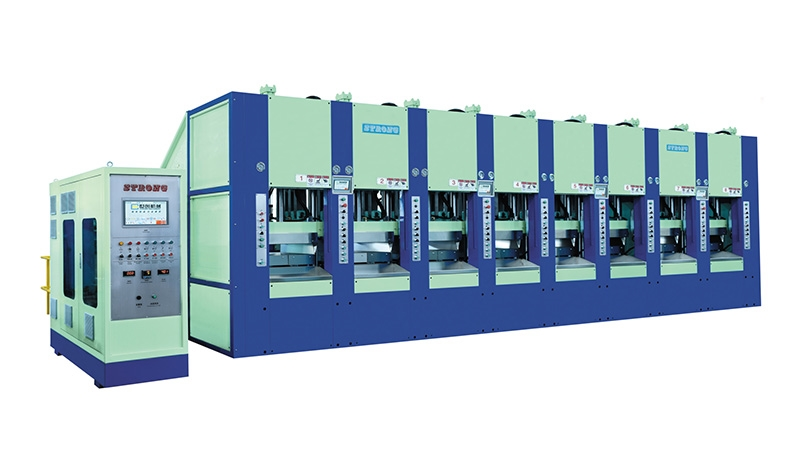 This machine is equipped with an advanced injection system in which the metering unit is monitored by a potentiometer and calculated through PLC and PC control to ensure precise material dosing. The injection carriage adopts linear guide rails driven by a braking motor, with high-speed movement controlled by a frequency inverter, while a rotary encoder is used for accurate position detection. The clamping system features a two-stage fast mold opening and closing mechanism with full mold-closing detection, and a low operating platform design that shortens the opening stroke and allows flexible use of various mold types. The control system is built on a Windows-based platform with a graphical human-machine interface and touchscreen display, enabling real-time monitoring of feeding speed, injection volume, injection time, injection temperature, vulcanization time, and production output, making operation simple, intuitive, and user-friendly; the modular PLC system ensures a clear functional structure and high reliability. The hydraulic system adopts a servo-driven design to enhance safety and stability, reduce noise, and improve overall production efficiency, while enabling precise multi-stage pressure and flow control through the computerized system. Energy-saving features include water-free mold stations, high-efficiency insulation materials, and an air-cooled hydraulic system to reduce energy consumption. In addition, the integrated servo energy-saving system can reduce power consumption by approximately 30% under normal operating conditions.